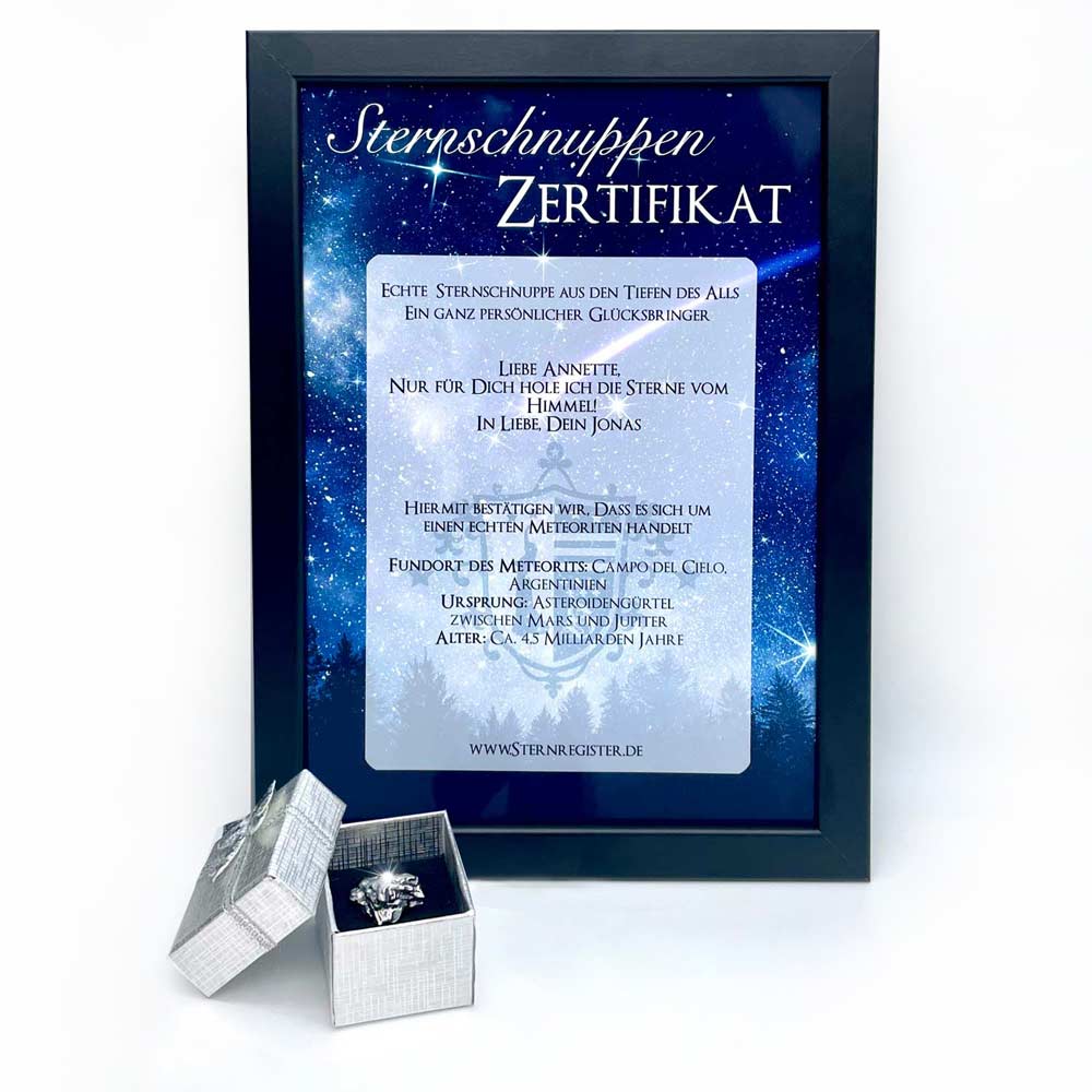 Lassen Sie Ihren Meteoriten und Ihr Zertifikat stilgerecht verpacken und sparen Sie sich die mühsame Suche nach einem passenden Geschenkpapier! Wir verpacken Ihre Bestellung in einem passenden und hochwertigen Geschenkpapier für Sie, so dass Sie Ihre Sternschnuppe direkt nach Erhalt verschenken können!